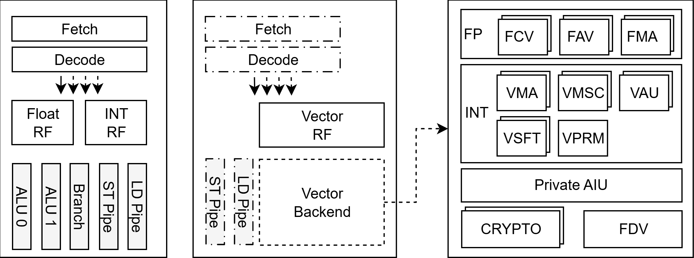 It is aimed at number-crunching applications and has support for the optional RVA23 extensions Zbc, Zbkc, Zcd, Zfbfmin, Zfh, Zvbc, Zvfbfwma, Zvfh, Zvkng, Zvknha, Zvksc, Zvksg, as well as a custom low-precision matrix extension.